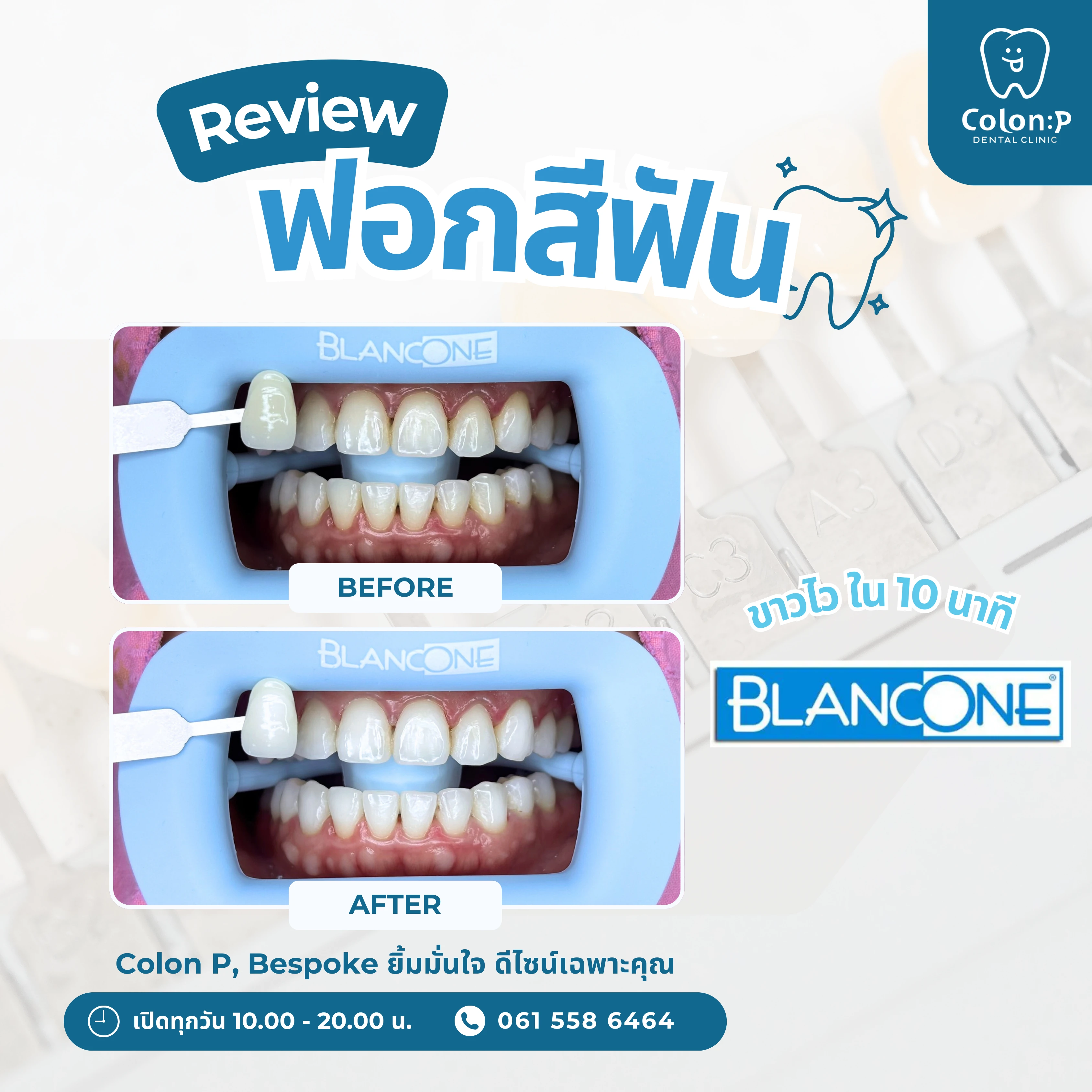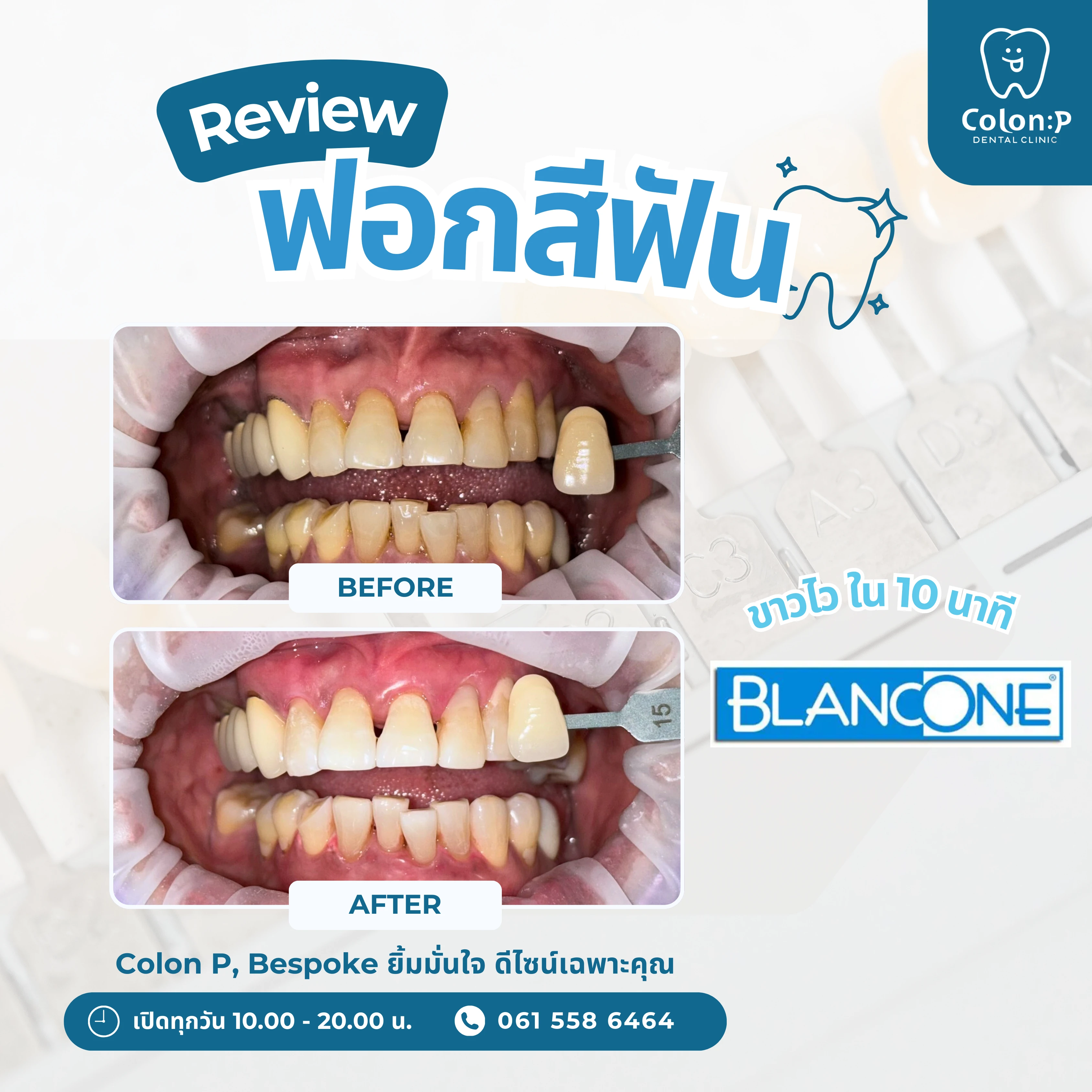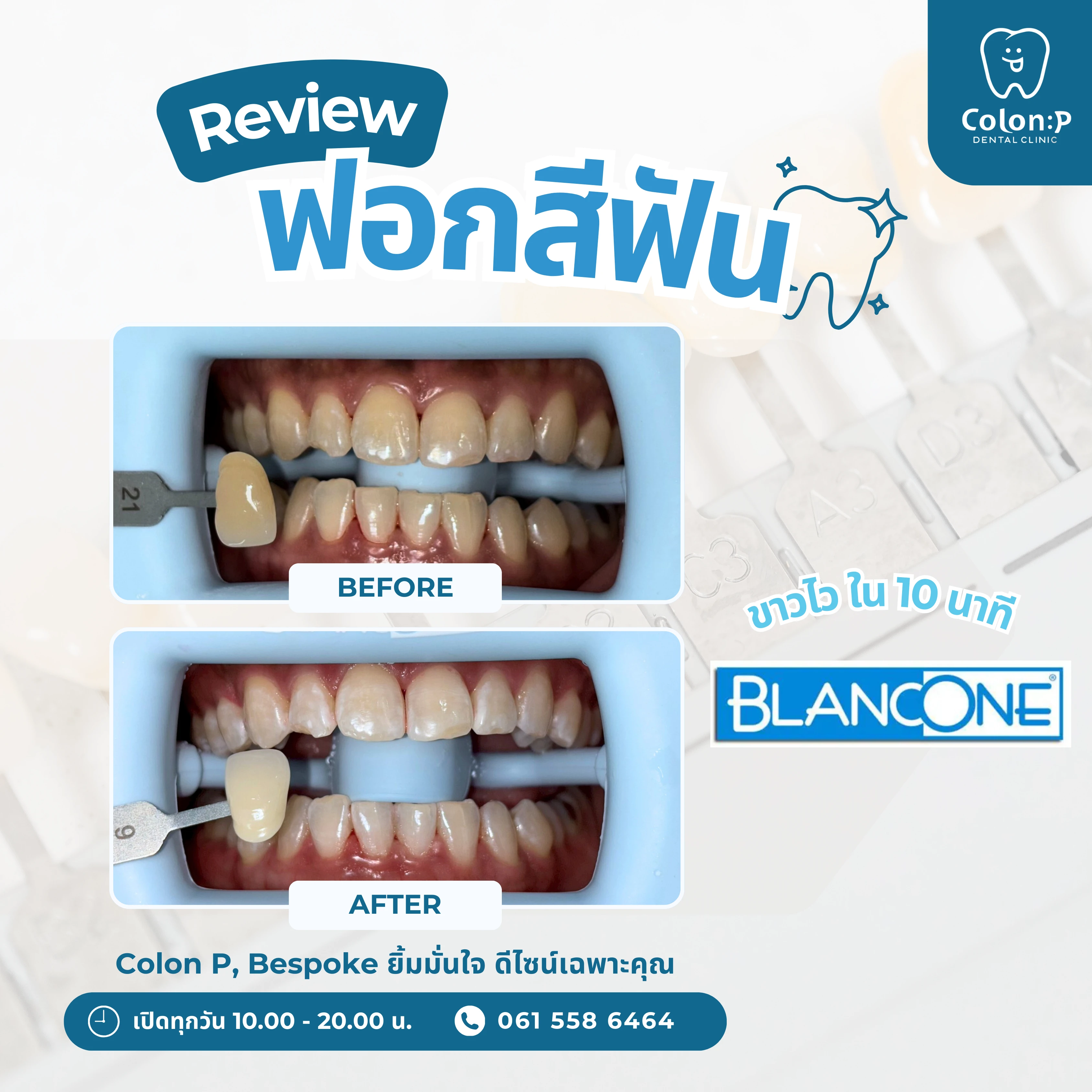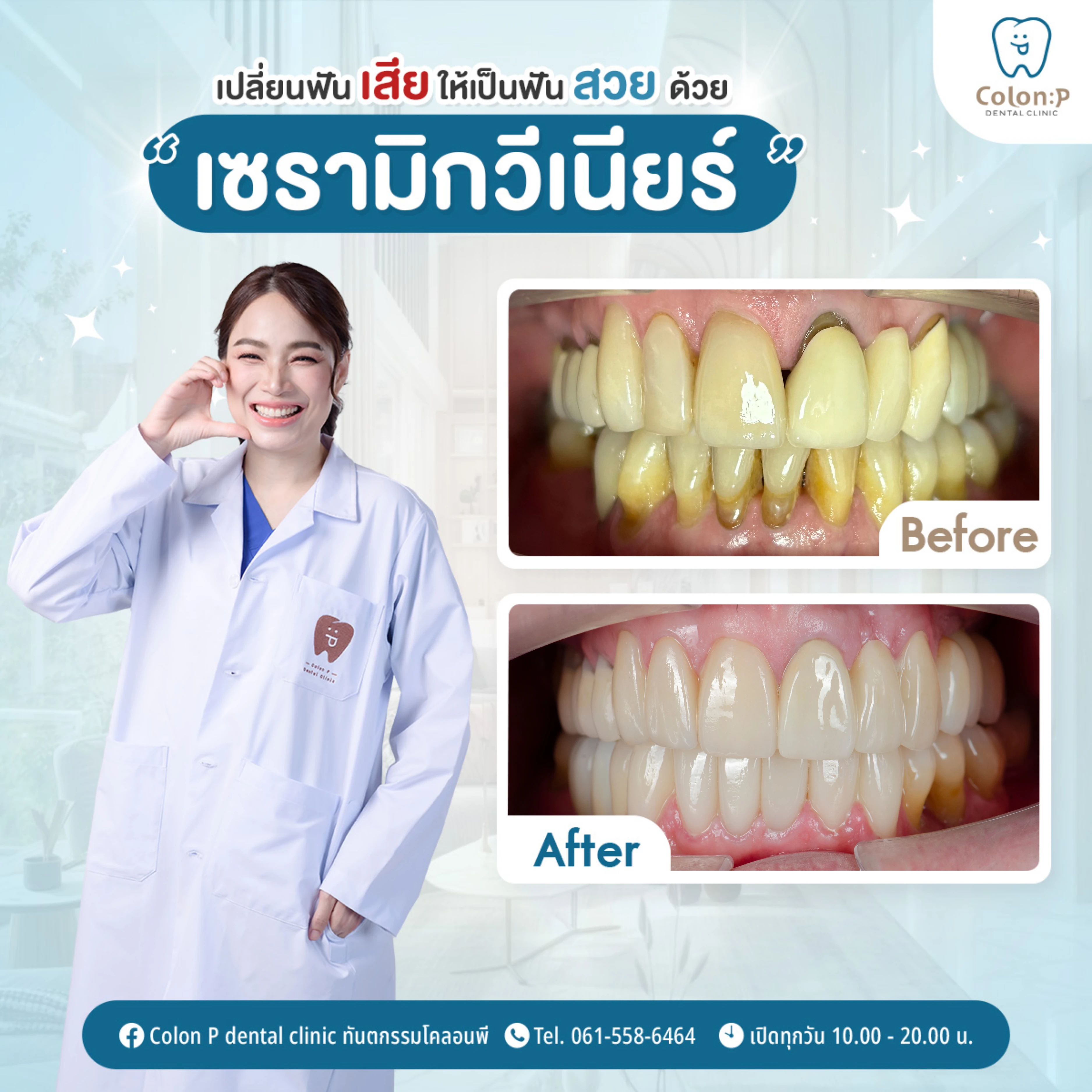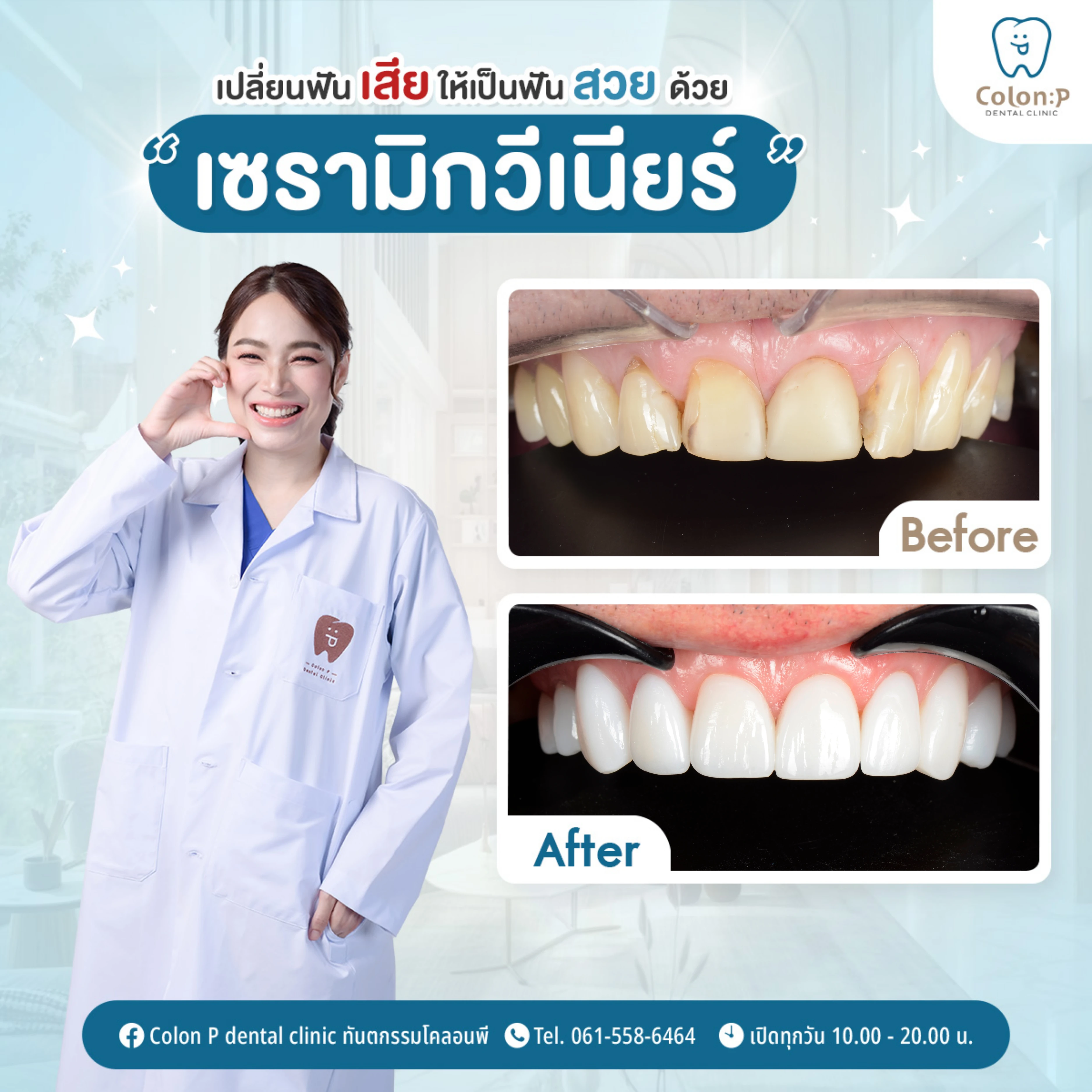 วีเนียร์คอมโพสิต แบบฉีด แก้ไขแปะฟันแบบเดิม ที่ชำรุด และแตกหัก กลับมามีรอยยิ้มที่สวย หวาน สุขภาพดี แบบธรรมชาติ ภายในหนึ่งวัน💙🦷_________________________Colon P Bespoke ยิ้มมั่นใจ ดีไซน์เฉพาะคุณ✨📞061 558 6464📲Line Official: @colonp 🚙 มีที่จอดรถคลินิกทันตกรรมโคลอนพี เปิดให้บริการทุกวัน 10.00 น. - 20.00 น.___________________________#จัดฟันใส #invisalign #จัดฟันโคราช #จัดฟันใสโคราช #ทำฟันโคราช #คลินิกทำฟันโคราช #อุดปิดฟันห่าง #อุดปิดช่องฟันห่าง#วีเนียร์โคราช #veneerโคราช